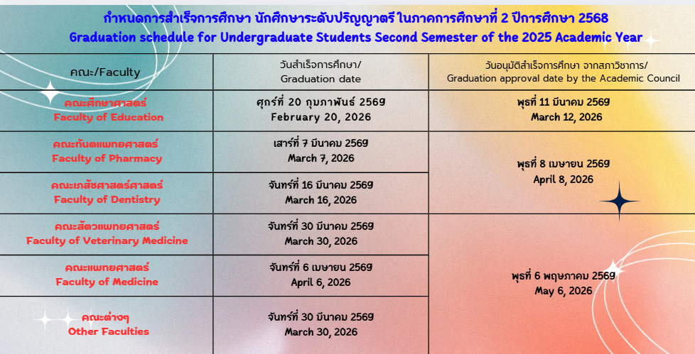 Graduation schedule for Undergraduate Students Second Semester of the 2025 Academic Yearinput date: 7 พ.ย. 2568 , 14:00 -